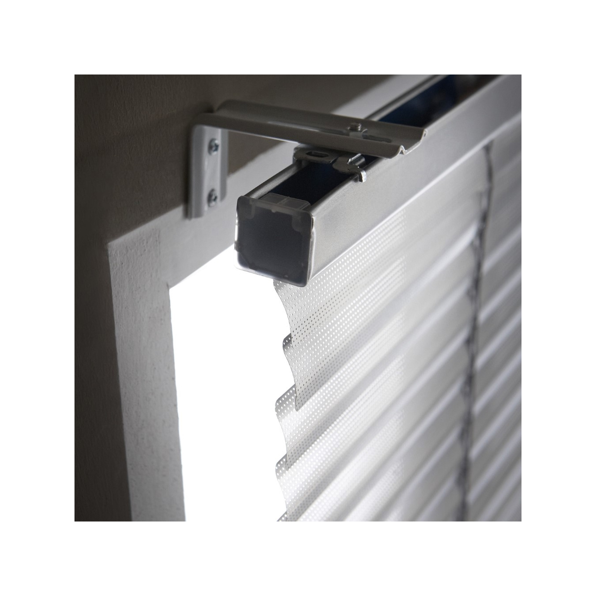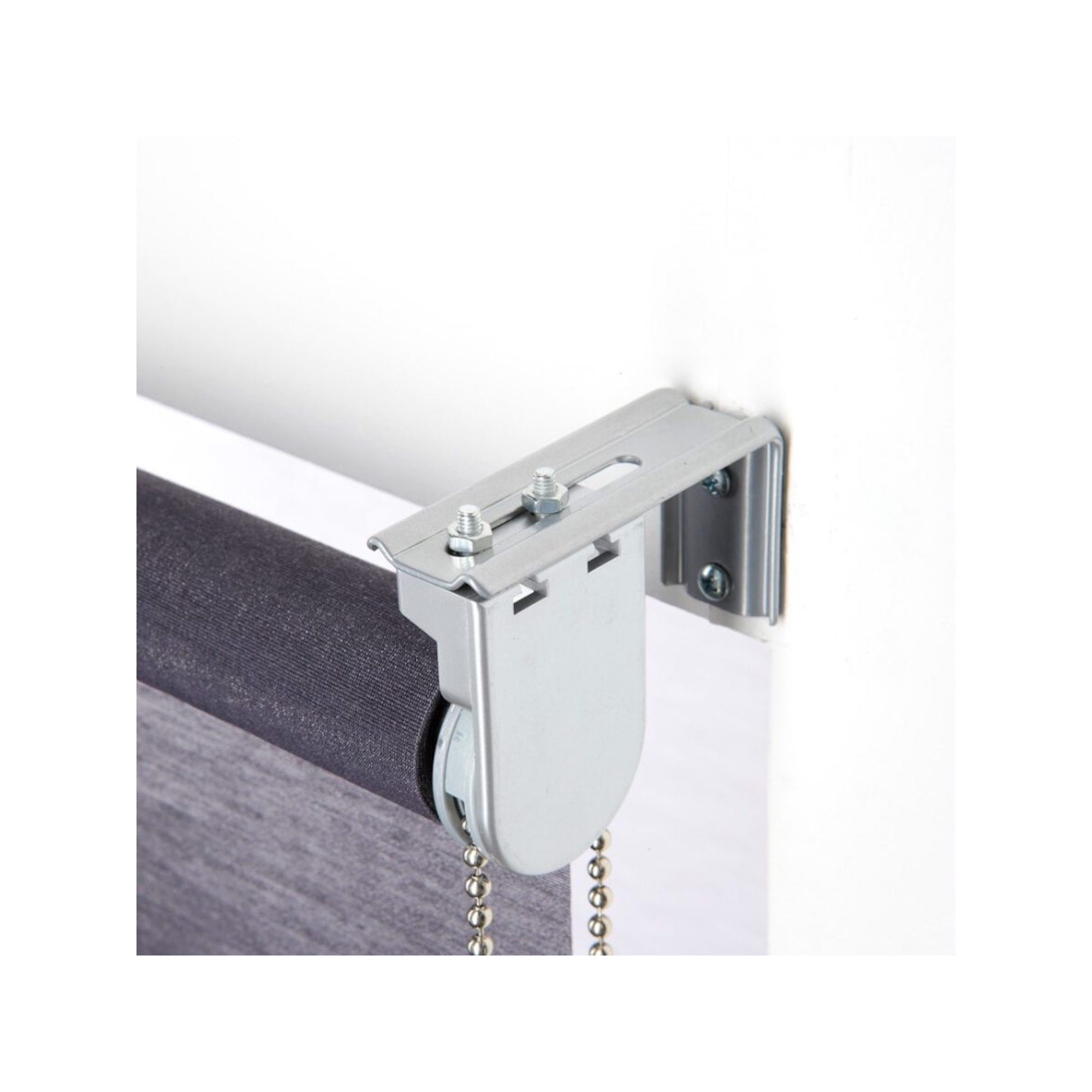 Jeu d'équerres métalliques avec boulons, disponible en blanc ou en gris métal, pour déporter votre store du mur ou de la fenêtre.