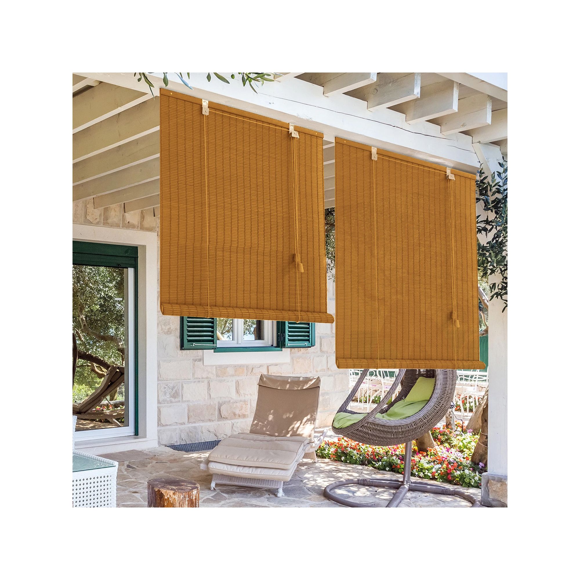 Profitez de l'élégance naturelle des stores bambou extérieurs, traités spécialement pour résister aux conditions extérieures.