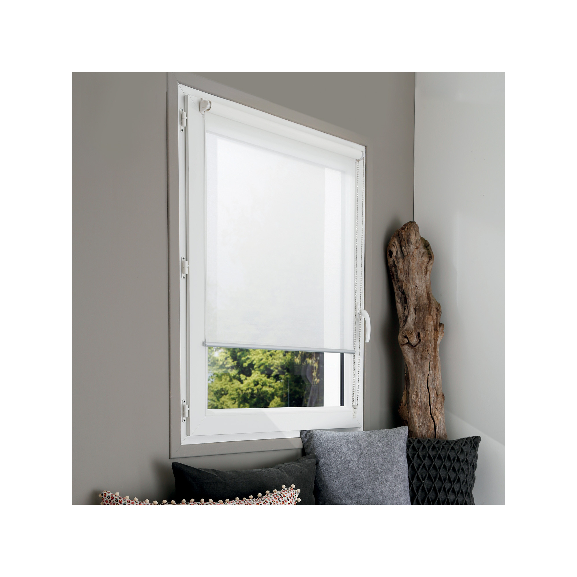 Store enrouleur ssez facile à installer, et donne un joli rendu. Tout en tamisant légèrement la clarté.