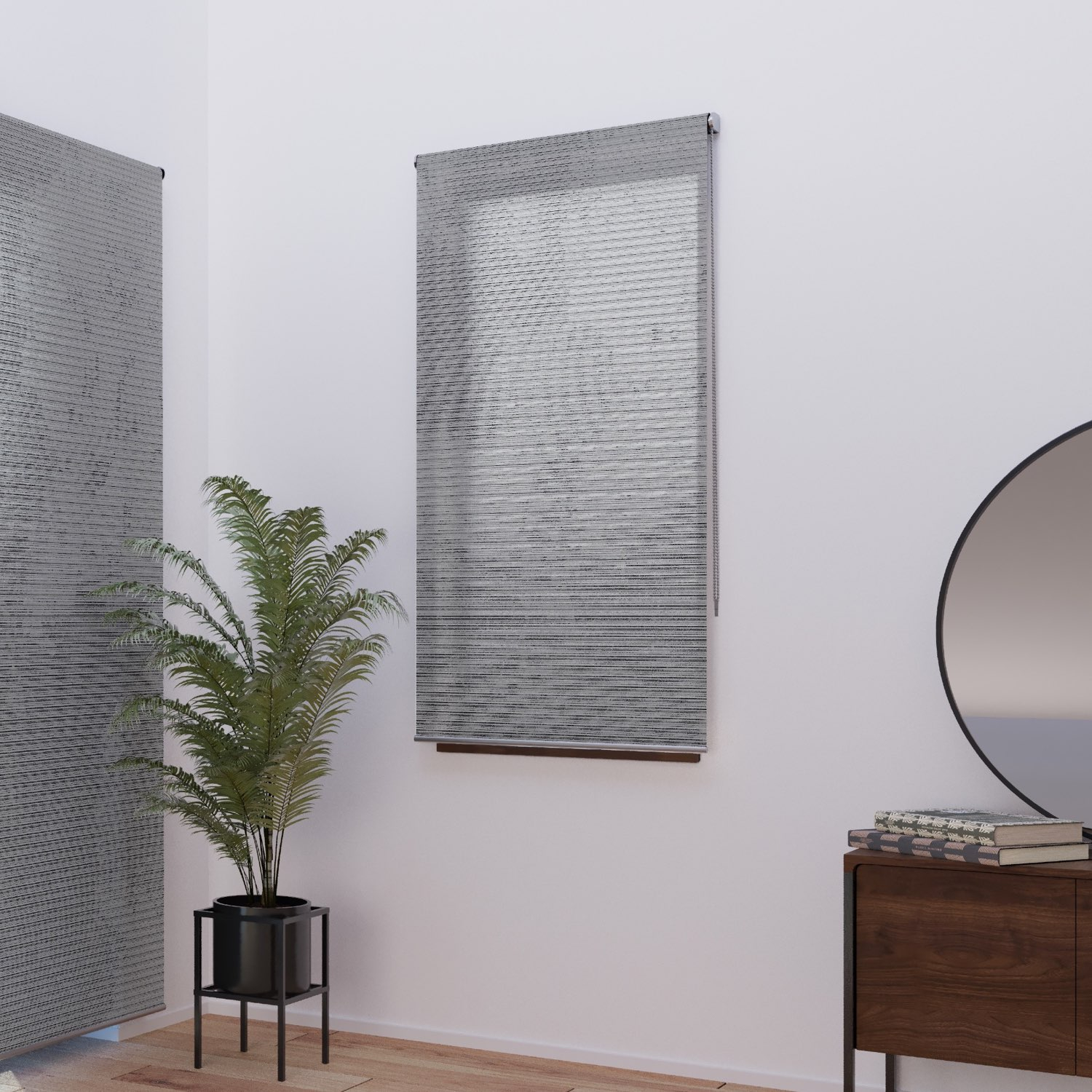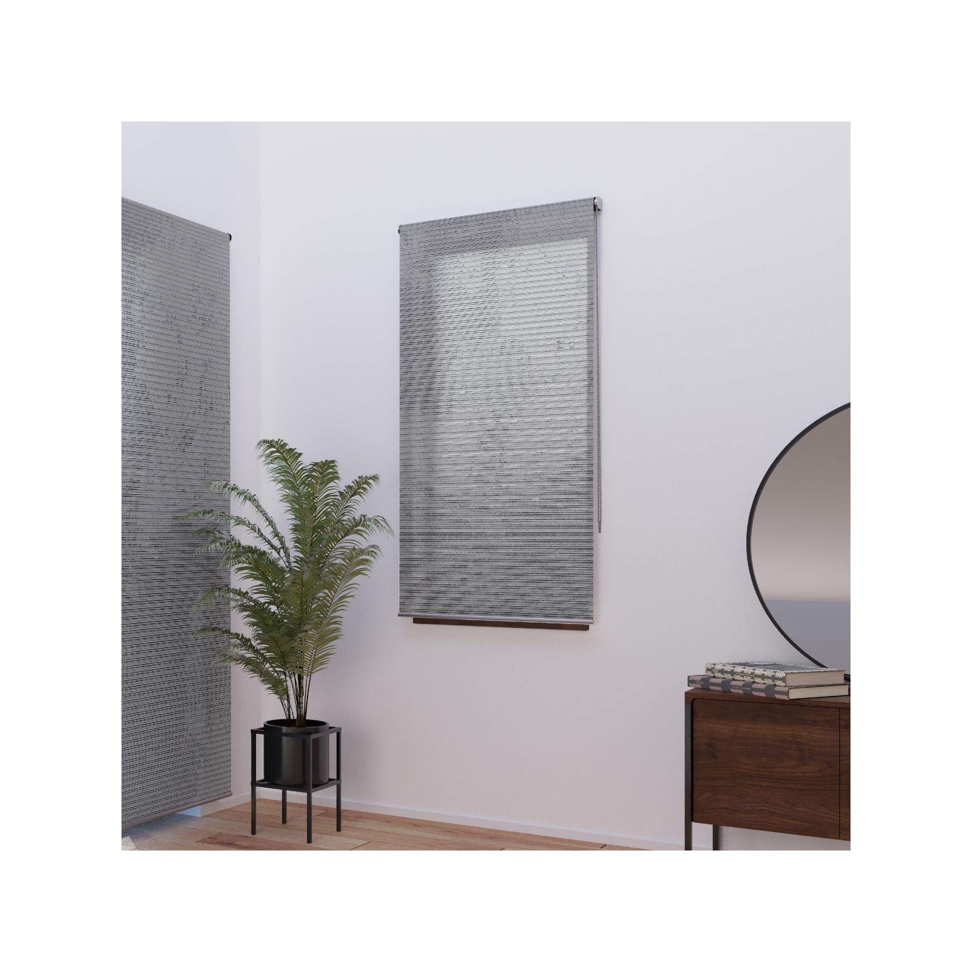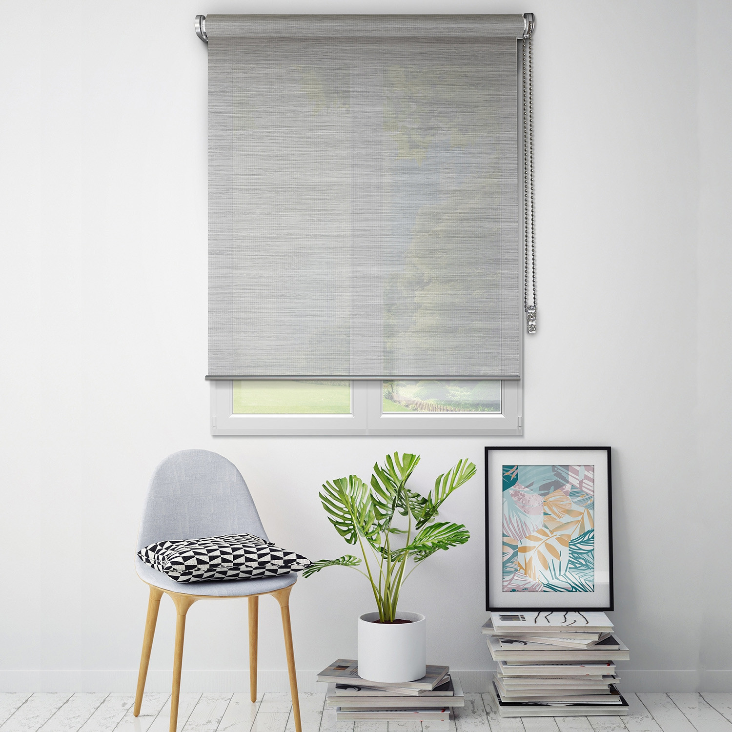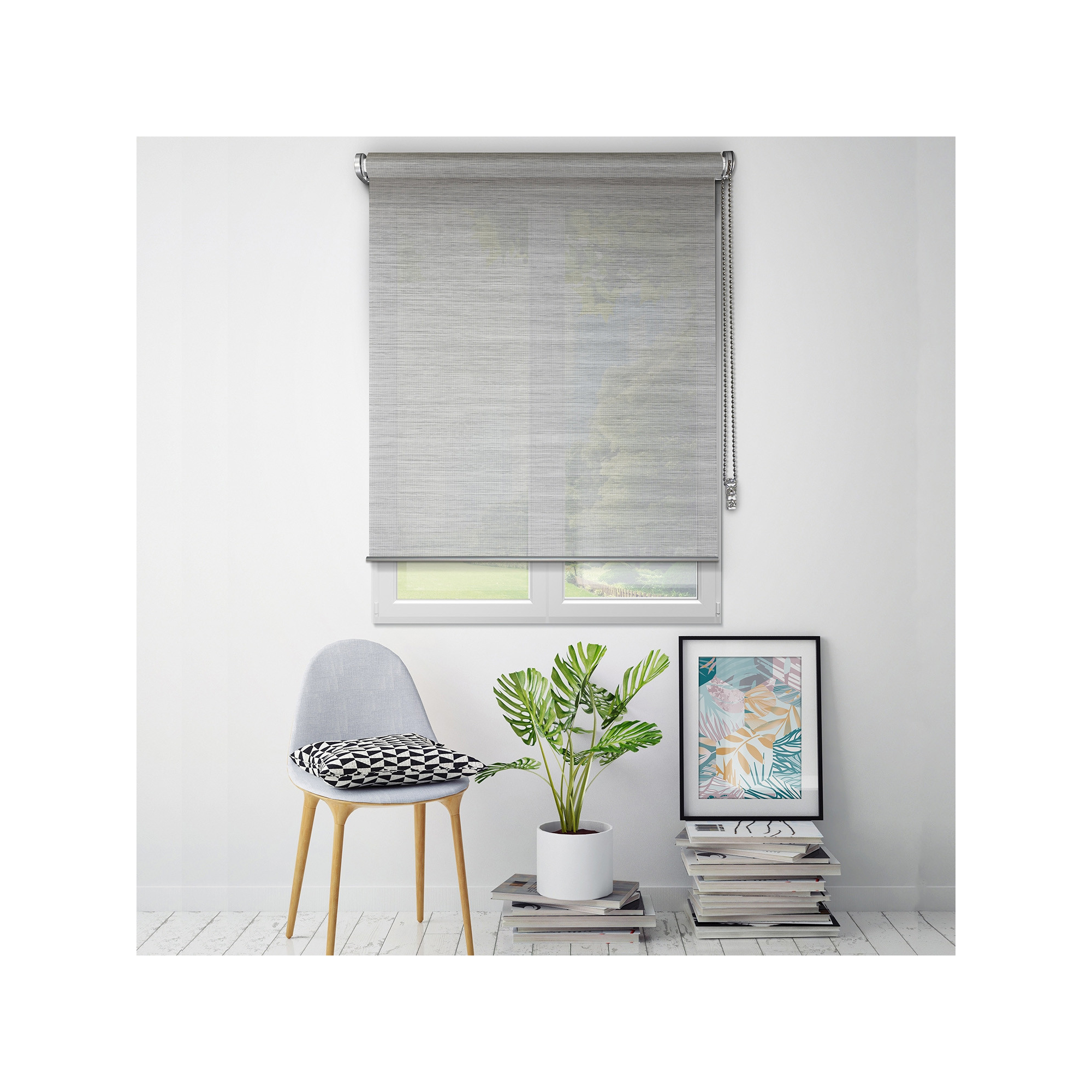 • Le store enrouleur gris chiné laisse entrer la lumière tout en préservant votre intimité. Les stores de la gamme must ont des finitions et des tissus haut de gamme : ils sont garantis 5 ans.