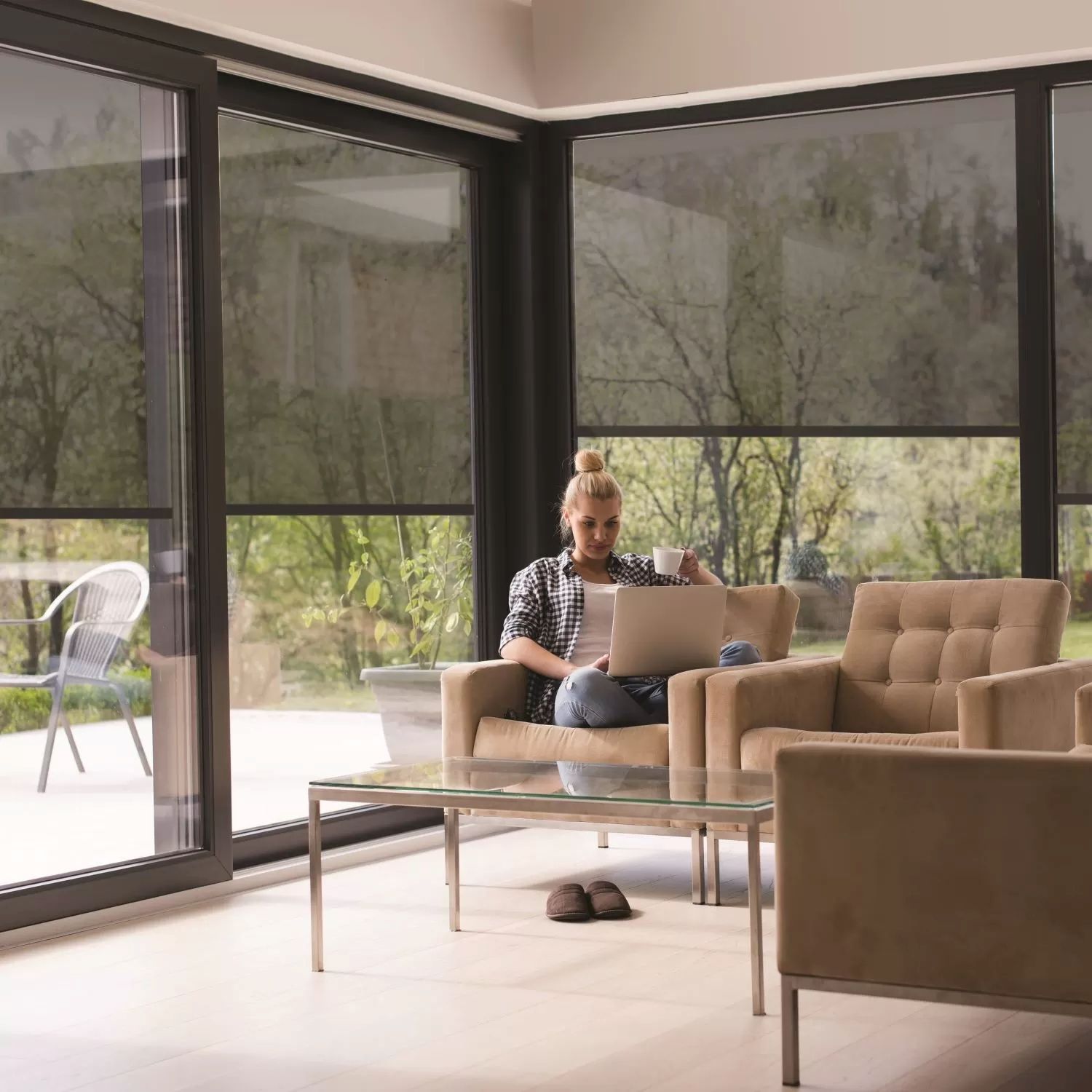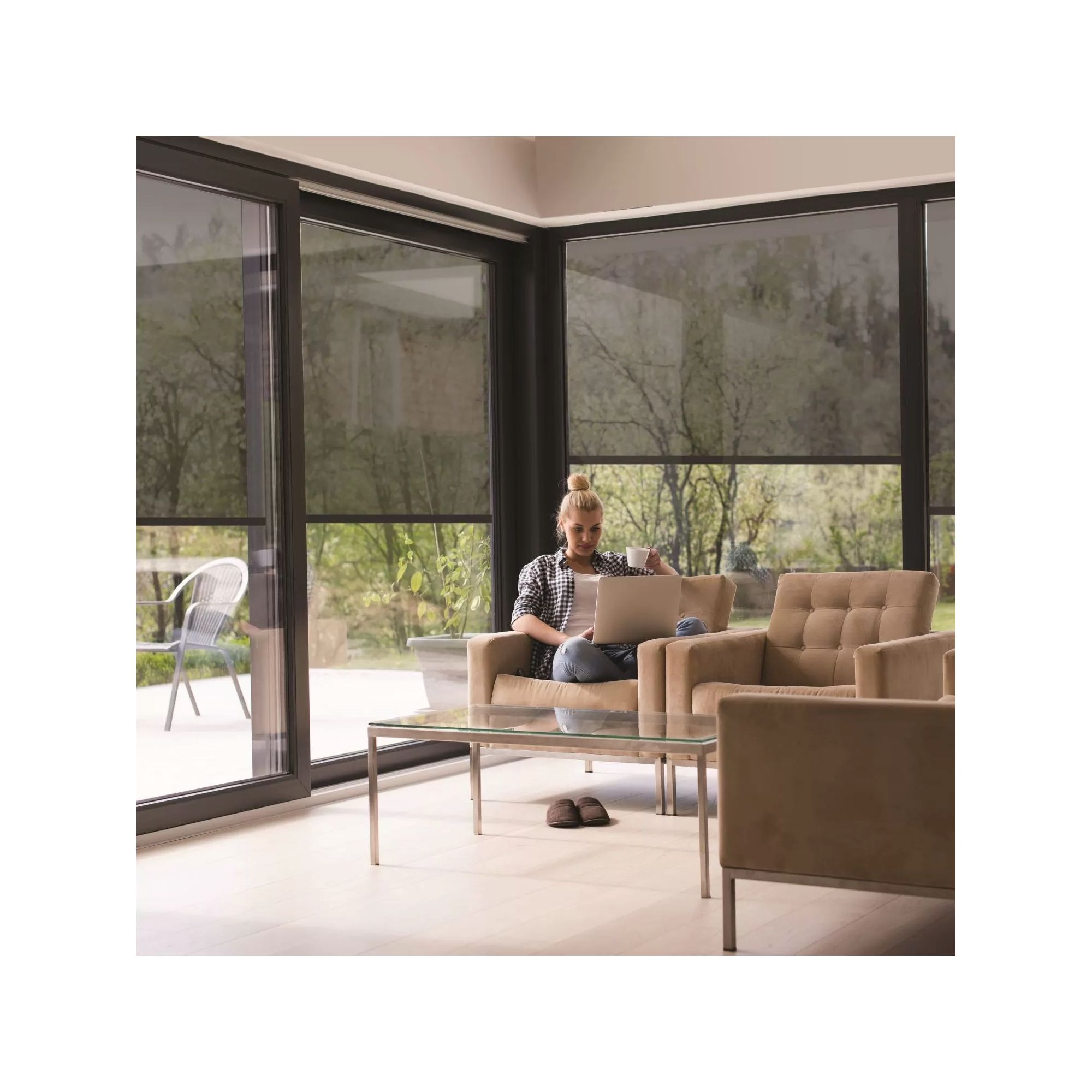 Le store enrouleur extérieur préserve votre intimité tout en permettant une visibilité totale sur l'extérieur même fermé.