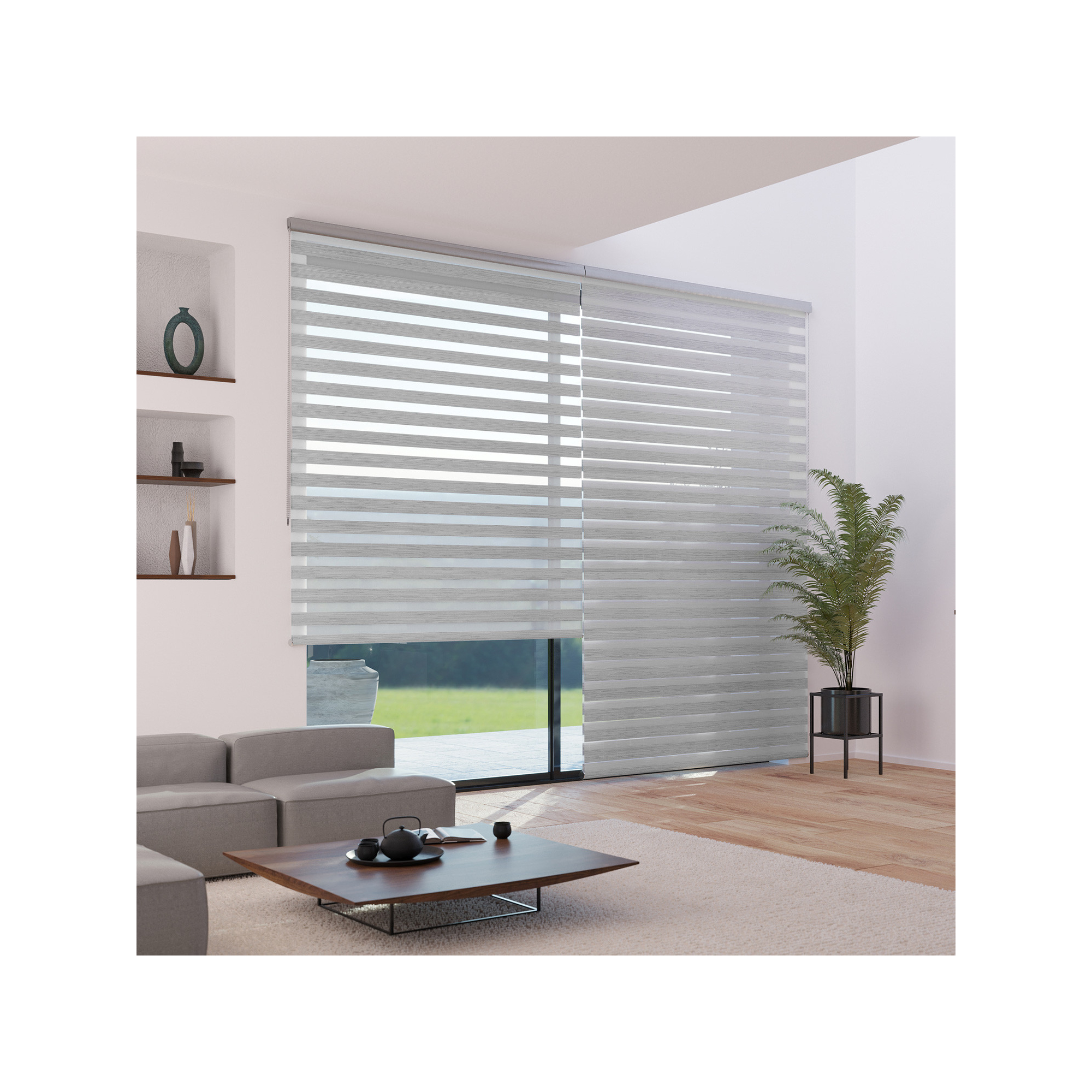 Le store jour nuit vous permet de choisir entre une opacité tamisante pour vous protéger du vis-à-vis, obscurcir une pièce... ou une opacité voile qui laisse entrer délicatement la lumière. La coffre recouvre le rouleau de tissu pour une finition plus esthétique.