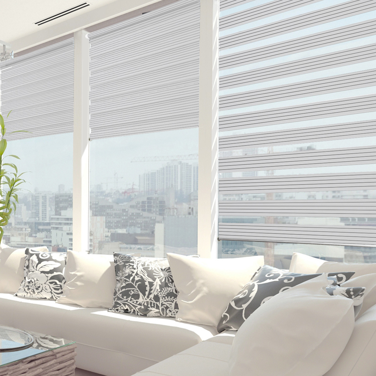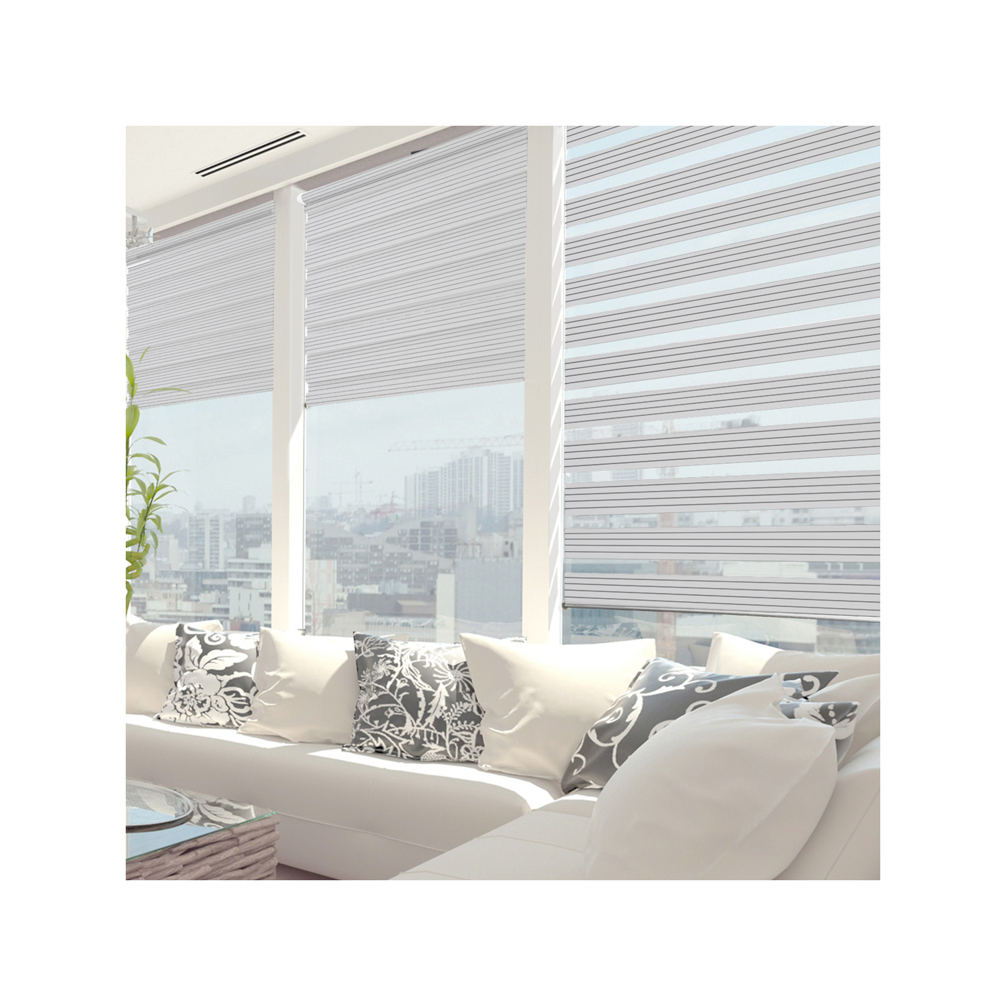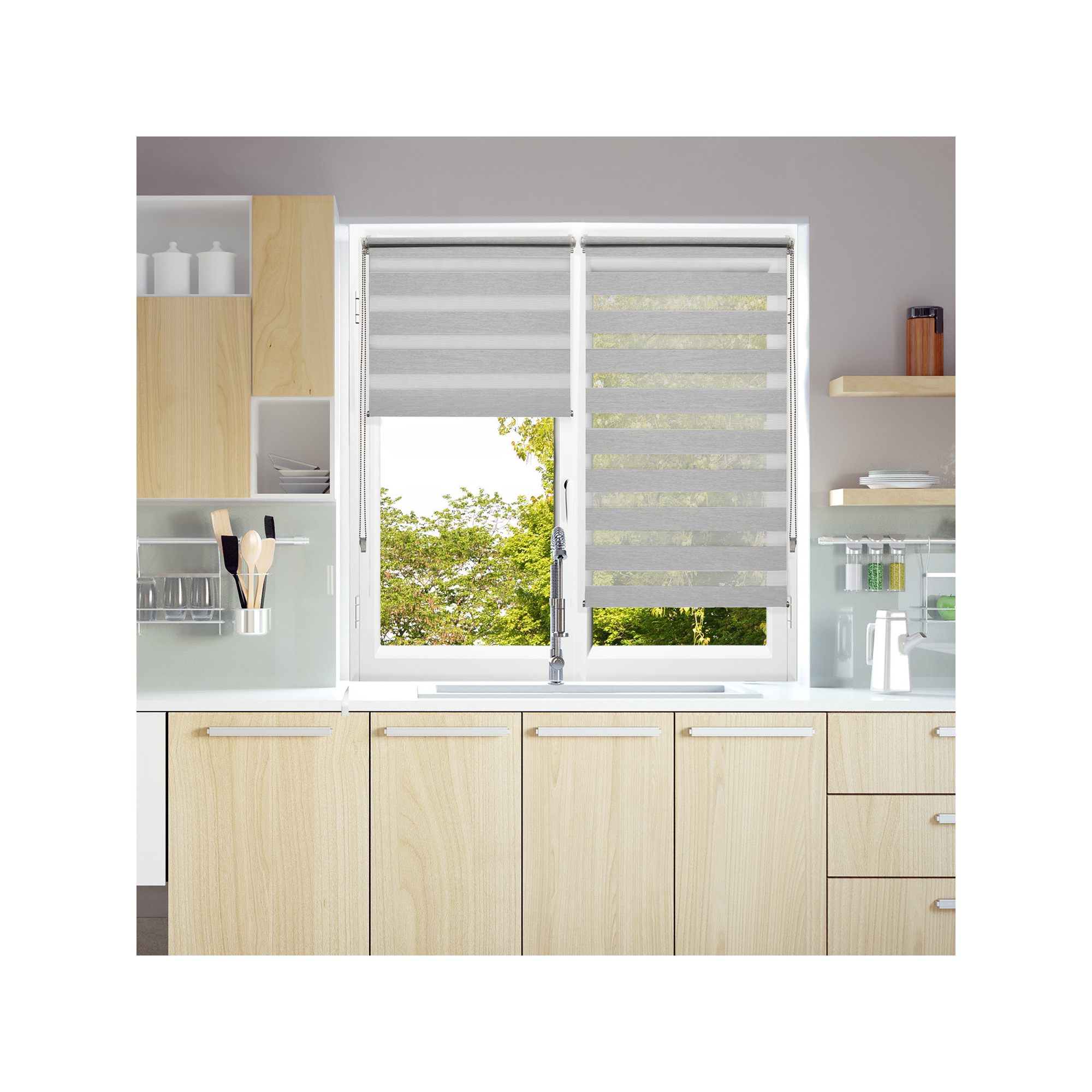 Grâce à son tissu voile et tamisant, le store jour nuit protège des regards indiscrets en laissant passer la lumière. Vous choisissez vous même la luminosité qui vous convient. Ce store est facile à installer avec un double système de fixations avec et sans perçage (à clipser) inclus.