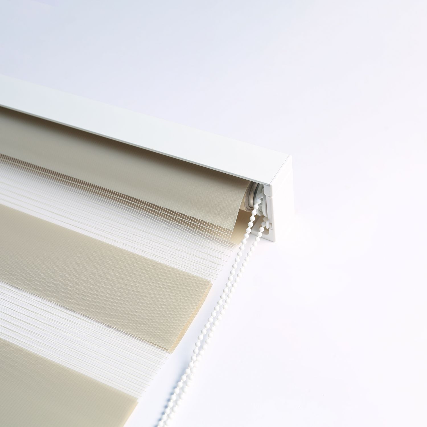 - Coffre en alu blanc : couvre le rouleau de tissu pour une finition esthétique