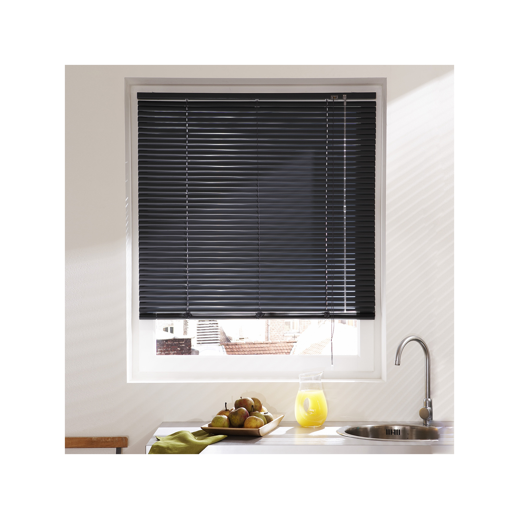 Apportez une touche de modernité dans votre intérieur grâce au store vénitien en aluminium. Doté de lamelles orientables, il est idéal pour doser finement la lumière et vous protéger des regards extérieurs en cas de vis-à-vis. La corde et la tige d'orientation vous aideront à régler la hauteur de votre store.