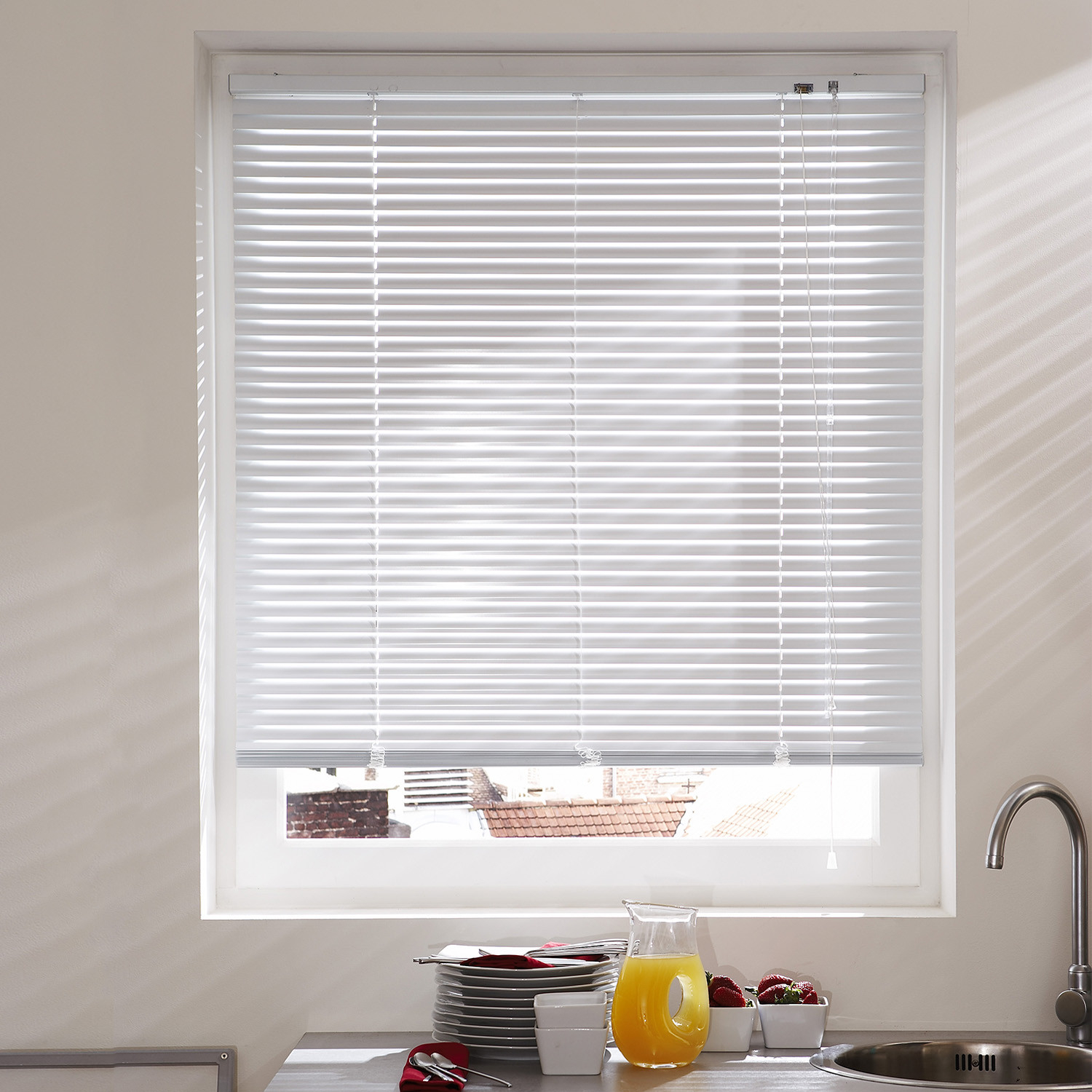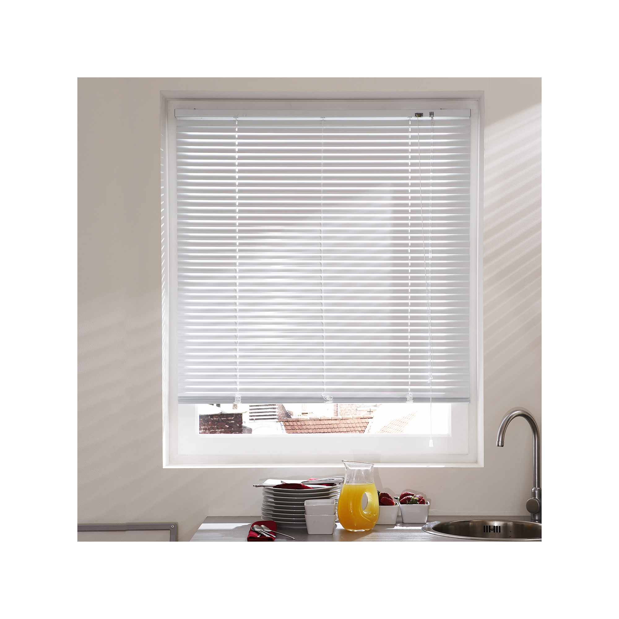 Apportez une touche de modernité dans votre intérieur grâce au store vénitien en aluminium. Doté de lamelles orientables, il est idéal pour doser finement la lumière et vous protéger des regards extérieurs en cas de vis-à-vis. La corde et la tige d'orientation vous aideront à régler la hauteur de votre store.